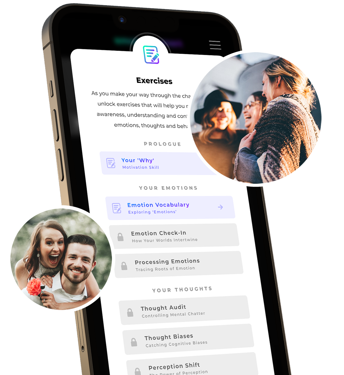 Interactive introspective exercises reveal thoughts and emotions that are affecting your mental and emotional states.